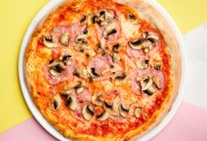 соус помодоро, моцарелла, ветчина, шампиньоны.