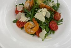 Креветки, Черри, Авокадо, Пармезан, Оливковое масло.
