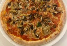 соус помодоро, моцарелла, шампиньоны, баклажан, цукини, сладкий перец, артишоки , лук.