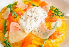 Ризотто с шафраном,копченым лососем и страчателлой