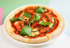 соус помодоро, моцарелла, орегано, базилик.