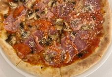 соус помодоро, моцарелла, ветчина, грудинка копченая, шампиньоны, томаты, пармезан, лук.