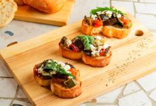Брускетта с печеными овощами и сыром фета
